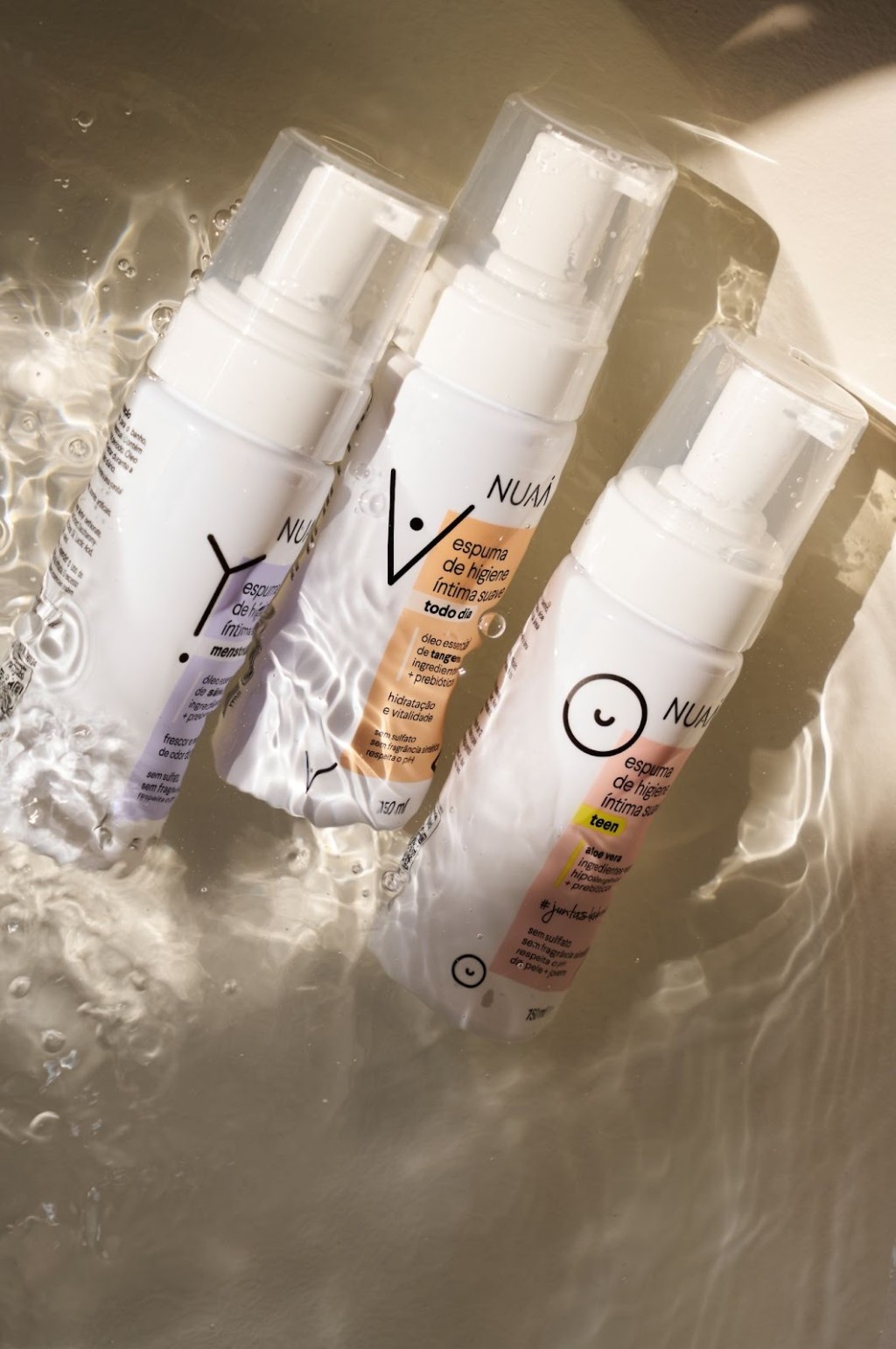 Sabonete íntimo em forma de espuma teen: Essa espuma foi desenvolvida focada em cuidar da pele jovem na fase da puberdade. Ela possui alta hidratação, graças à presença de Aloe Vera em sua composição e alivia a pele, promovendo a sensação de conforto e bem-estar na região íntima.