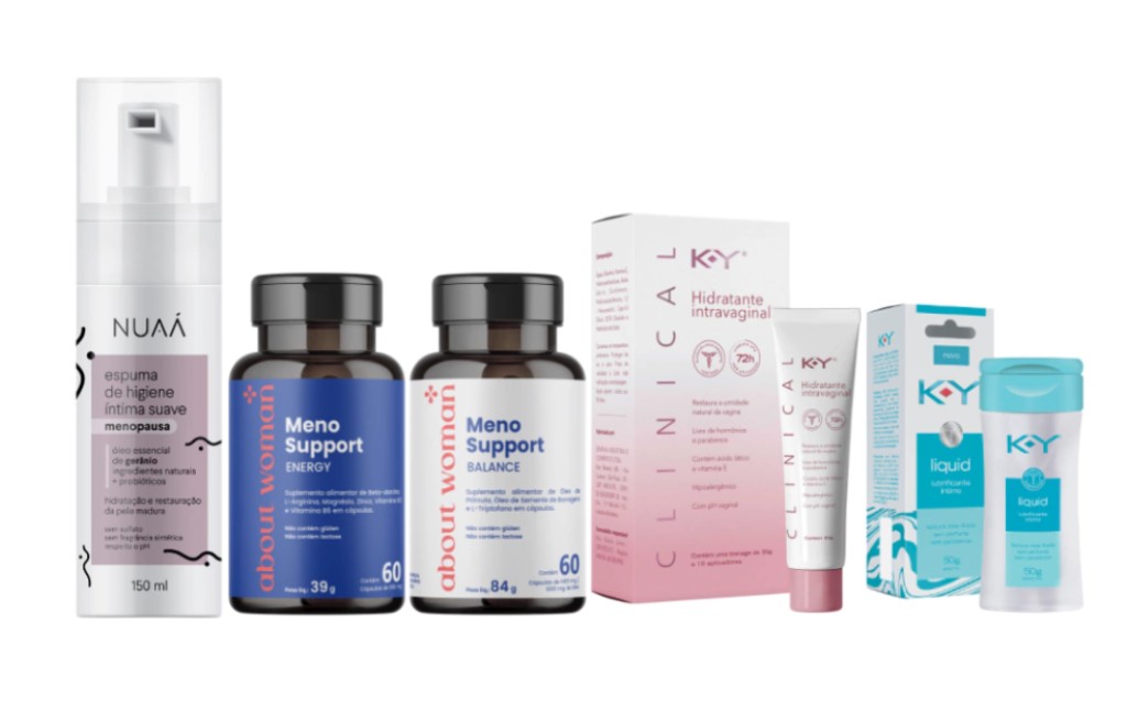 E, dentro dessas fases, está a perimenopausa! Para essa jornada, a NUAÁ criou kits de produtos variados, graças a parcerias com as marcas About Woman e KY®. Que tal conferir o kit menopausa completo?