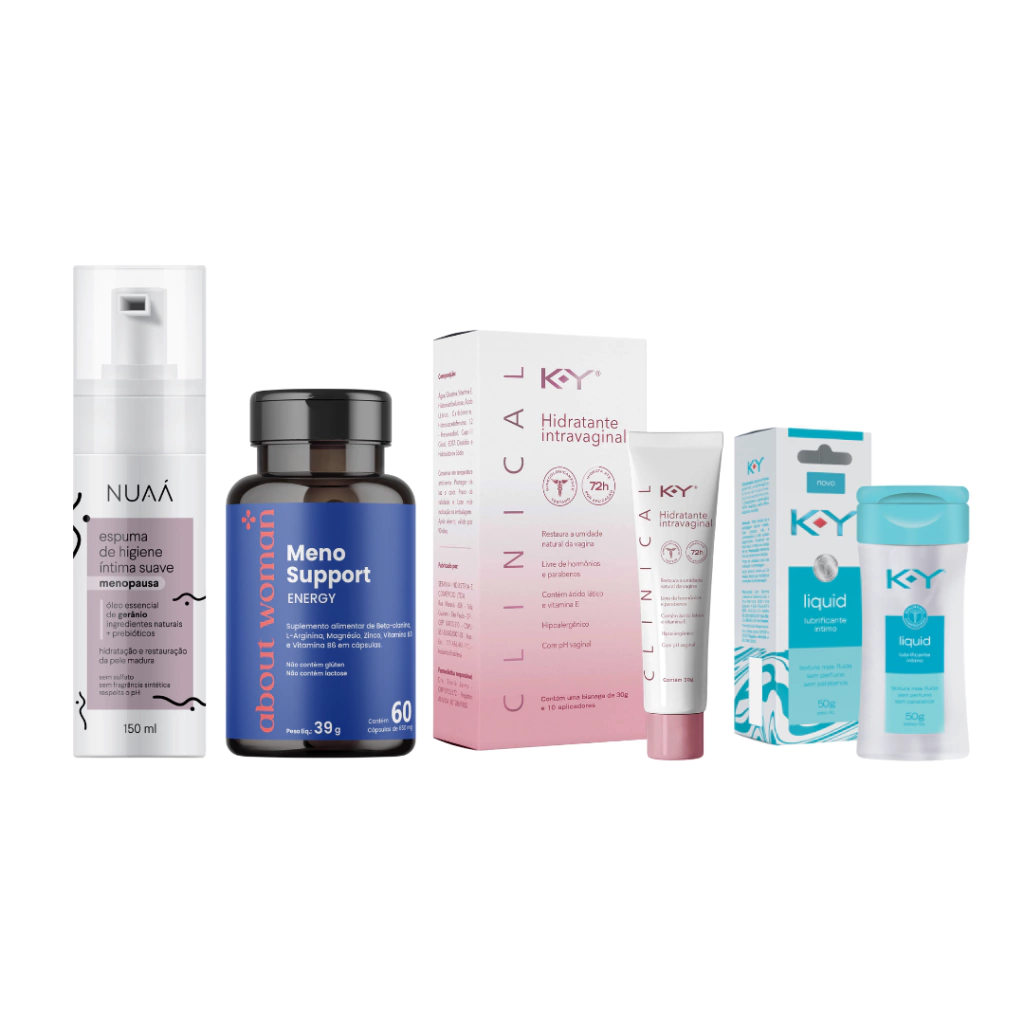 A menopausa pode trazer desconfortos como ressecamento e queda da libido. Pensando nisso, criamos o Kit Menopausa com Libido, que une higiene íntima, hidratação e suplementação para aumentar a disposição e apoiar o bem-estar sexual nessa fase.